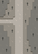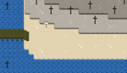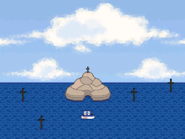 Lonely Isle is filled with black cross graves. One of the six barrier stones is located on this isle. Noir makes a cameo on this isle. In Wadanohara and the Great Blue Sea -Reboot-, Daimonji also makes a cameo appearance on it.