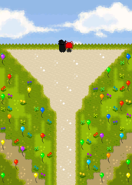 Rainbow Isle is filled with a variety of flowers and balloons. Wadanohara and her familiars go there after fixing all of the barrier stones. While on the isle, they meet up with Chlomaki and Lobco and converse with them.