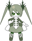 Helica wears a cactus green dress with white cuffs at the wrists, white collar, and white middle piece lined with eight dark green buttons. The bottom part of her dress is a mixture of cactus green, pale green, and white. She also wears cactus green knee-high boots, each with six buttons on a white cuff at the top, similar to the middle piece of her dress. Underneath are dark green leggings. Helica often carries a dark green drill-like shell as a weapon, which covers her hand as well.