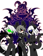 Satanick is Lil's husband. They have been together a very long time, and Satanick was already with her when he met Victor Flankenstein. [9] Their meeting was "a little peculiar" so their "first time" is hard to explain. [10] The reason behind their marriage is "a secret." [11] However, their married life is "pretty good, probably." [12] Satanick's first experience as a "top" was with Lil. [13] They are on good terms, with Lil being willing to come home to "cheer up" Satanick as shown in the Rainbow mini-comic. With Lil's penchant of "draining vitality," not even Satanick can stand up straight when she is done with him. [7] Lil appears to be fine with her husband's promiscuous activities. Conversely, Satanick does not appear bothered when Lil disappears.