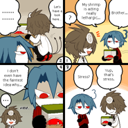 The Skeb comics are fan-commissioned comics which can be found on Deep-Sea Prisoner's Skeb profile. This Wiki section is incomplete, for one or more images are not in accordance with FANDOM guidelines. The translations below were done by Yao and typeset by Anonymous unless otherwise specified.