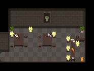 A large foyer is located on the first floor of the castle. It contains the Dining Hall where Mogeko come together to eat. The guardian of the first floor is Somewhat Strange Mogeko, who can be found in the first floor's parlor.
