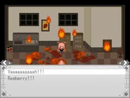 Bad End 3 involves Macarona being attacked by a crazed Rawberry. It is achieved when the player is playing as Macarona and goes to investigate Rawberry's whereabouts. Rawberry is found insatiably eating the flame bats that invaded her home. Picking the first option to scream will result in Rawberry attacking Macarona.