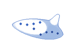 Wadanohara's ocarina is a white ten-hole instrument with a blowhole. It is often shown with a teal bag having white polka dots and a dark blue ribbon.