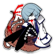 Initially, Deep-Sea Prisoner wanted to add more violent elements to the game but decided against this. [1] She had designed most of the characters after sea creatures, and since she pictures these creatures as quite peaceful, they became characters wanting peace at all costs. [1] Some of the characters she has grown most attached to are Syakesan and Tarako,[1] who appear in some of her artworks as mascots.